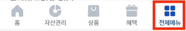 1. 신한 쏠 앱을 설치했다면 실행 후 로그인을 해줍니다.(계정이 없다면 회원가입을 진행해주세요.) 이후 하단에 전체메뉴를 클릭합니다.