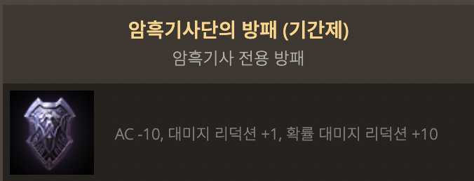 암흑기사 리부트가 메인인 만큼 성장 지원 상자에서는 아덴기사단 장비 상자 외에 암흑기사단의 방패(기간제)인 암흑기사 전용 방패도 지급받을 수 있습니다.