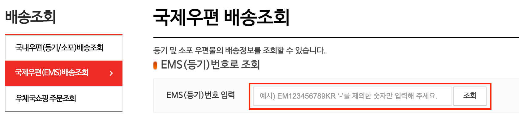 먼저 EMS 해외배송 조회방법은 매우 간단합니다.
