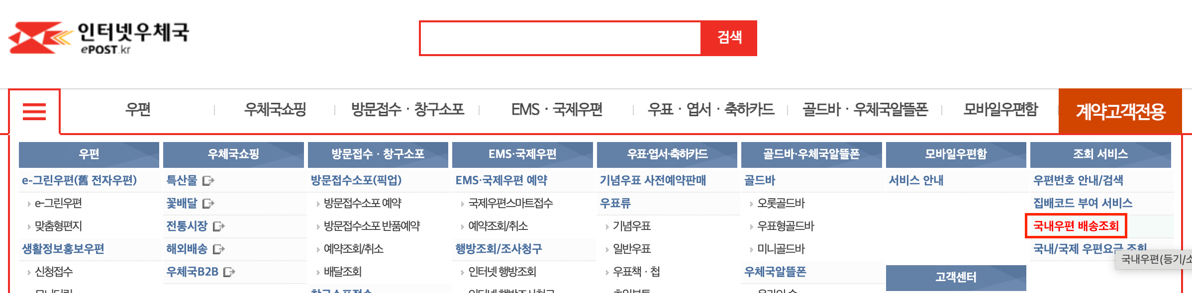 2. 조회 서비스 → 국내우편 배송조회 → 국제우편(EMS) 배송조회 클릭