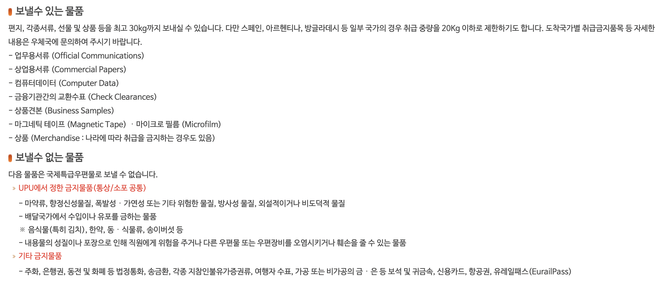 ✅ 추가로 도착지 국가의 EMS 발송조건도 확인해주는 것이 좋습니다.